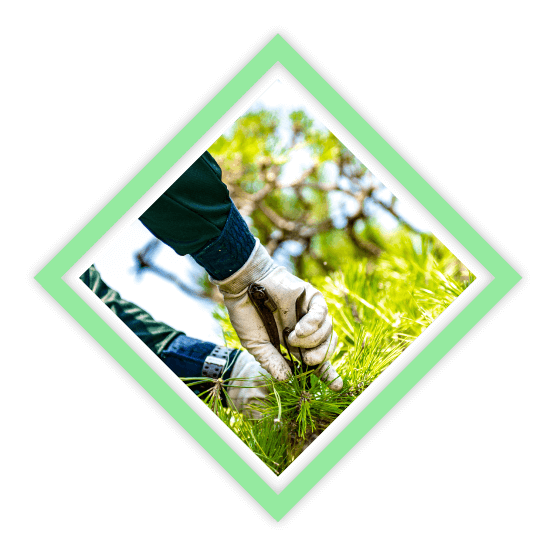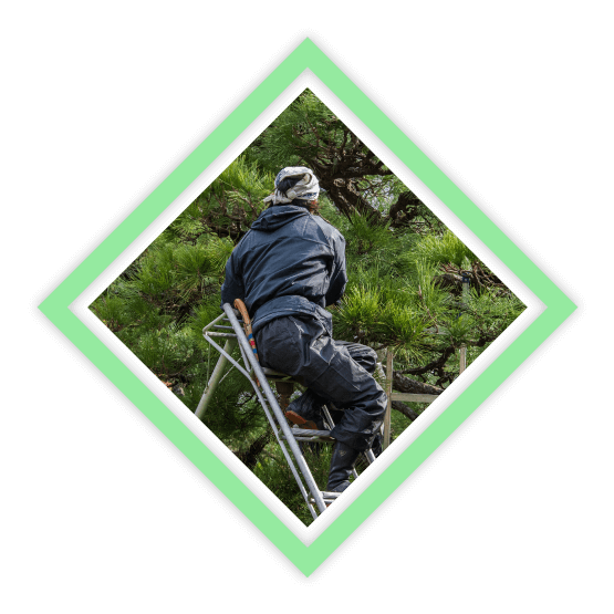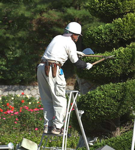 お客様のお宅へご訪問し、樹木の形を整えたり、風通しを良くしたり、手入れをします。