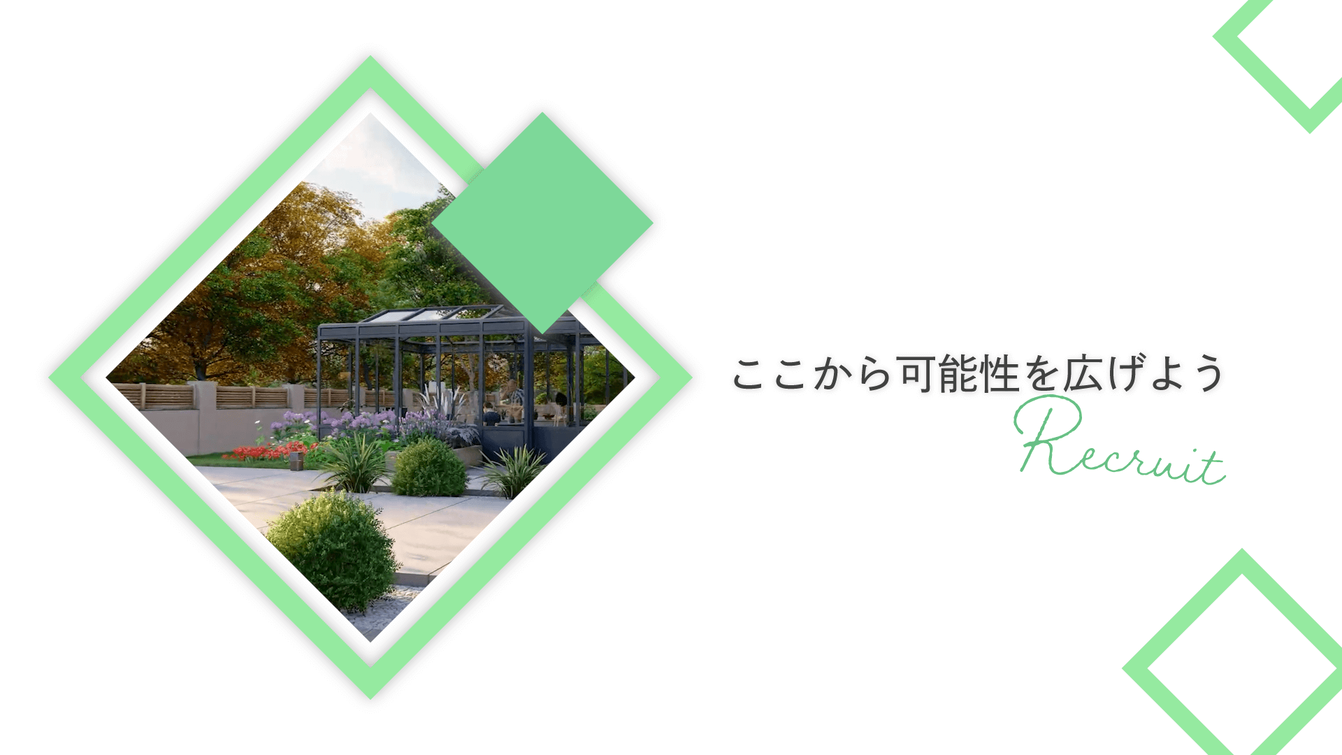 建物の外の空間に必要な構造物を設営したり、住まいとして使いやすくするため地面を整備したりする工事を生業としています。